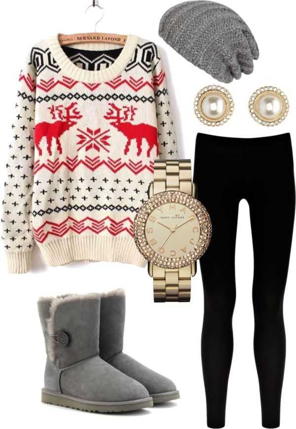 Классика: угги, узкие джинсы, свободный свитер или пуловер.