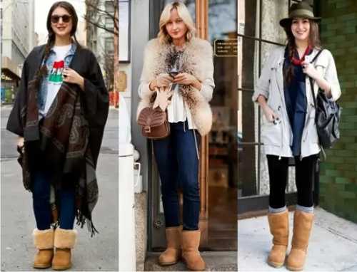 Стилисты наперебой дают советы относительно того, с чем сочетать угги предстоящей холодной зимой в различных стилях уличной одежды. Более спортивный образ получится при сочетании коротких или удлиненных угг кофейного оттенка с небольшим узором с легинсами и яркой толстовкой.