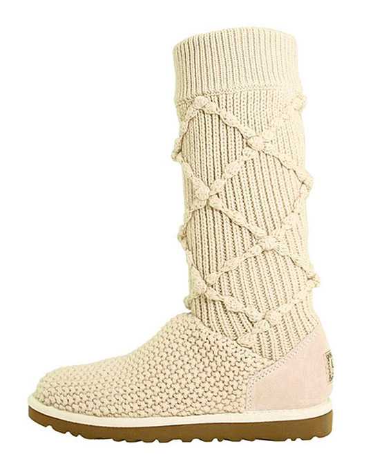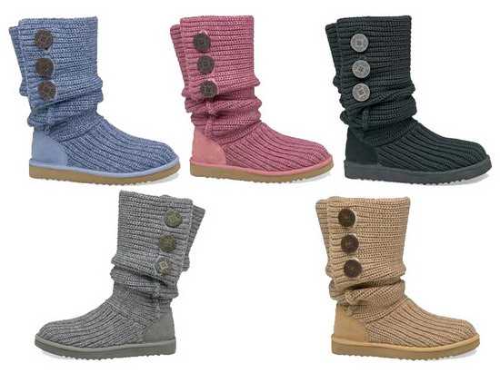 Еще одно направление, обещающее стать мегапопулярным – вязанные модели, точнее, модели, верх которых отделан или полностью выполнен из фактурного трикотажа. Здесь особо популярными будут узоры в виде кос, а если добавить к гардеробу шарф, варежки и шапку в том же стиле, то сверхмодный образ гарантирован. Кстати, одним из плюсов трикотажных угг можно считать тот факт, что их цветовая гамма ограничивается лишь пределом человеческой фантазии: выбирайте бирюзовые, розовые, лиловые – модным будет все. Кроме того, производители обещают, что каждый желающий сможет выбрать себе модель в соответствии со своими материальными возможностями.