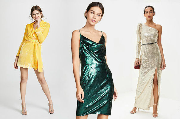 Праздничная одежда на Новый год может быть строгой и женственной, либо экстраординарной. Приветствуются разрезы на спине, воротники-водопады и банты, кружевные накидки и меховые горжетки. В неформальной и расслабленной обстановке можно надеть даже молодежное вязаное платье-свитер с норвежским узором, а подчеркнуть нарядный лук сумеют яркие аксессуары, ювелирные украшения и блестящие босоножки.