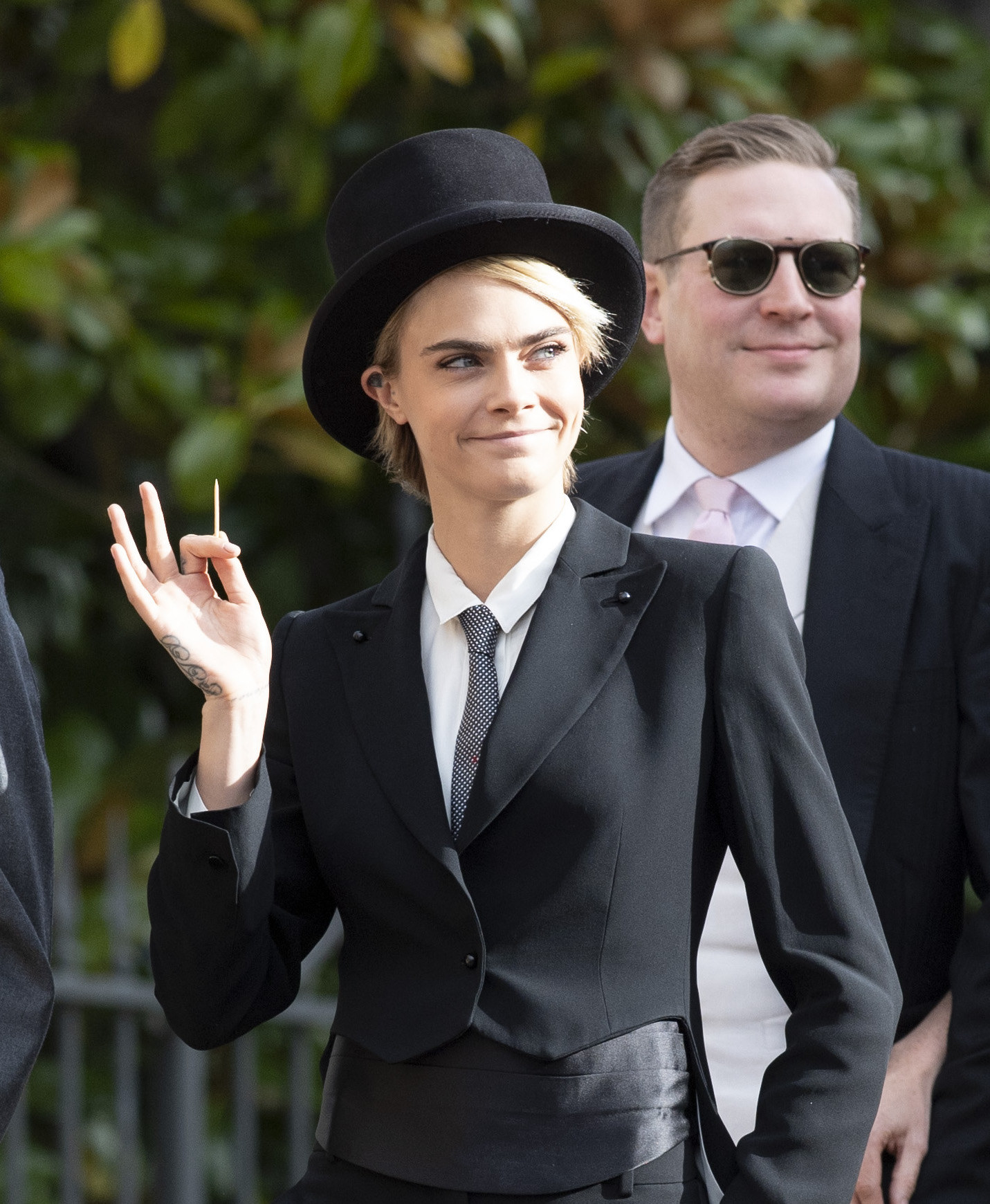 Кара Делевинь предпочла не следовать дресс-коду, в соответствии с которым дамы надевают на королевскую свадьбу платья. Модель была в брючном смокинге и… попала в объективы всех фотокамер с зубочисткой во рту.