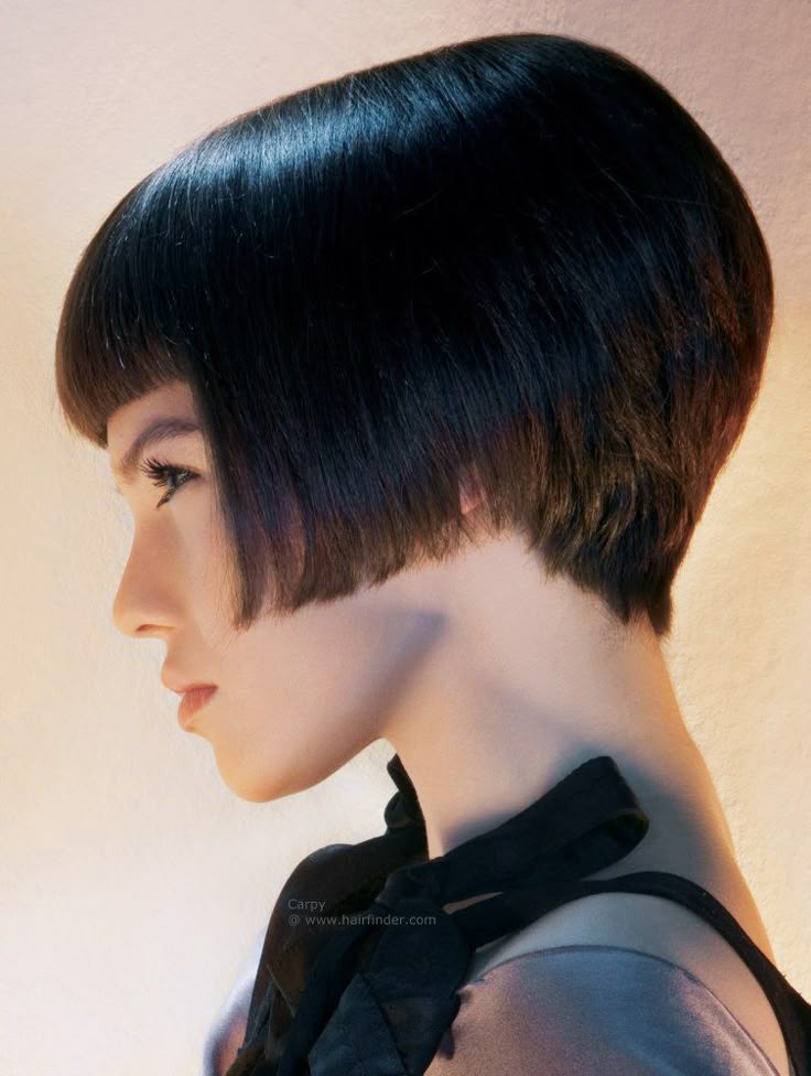 Таким образом, особо подчёркивается линия шеи, создаётся эффектный силуэт и образ в целом. Она смотрится очень элегантно и сдержанно. Такую стрижку можно делать как на густые волосы, так и на редкие.