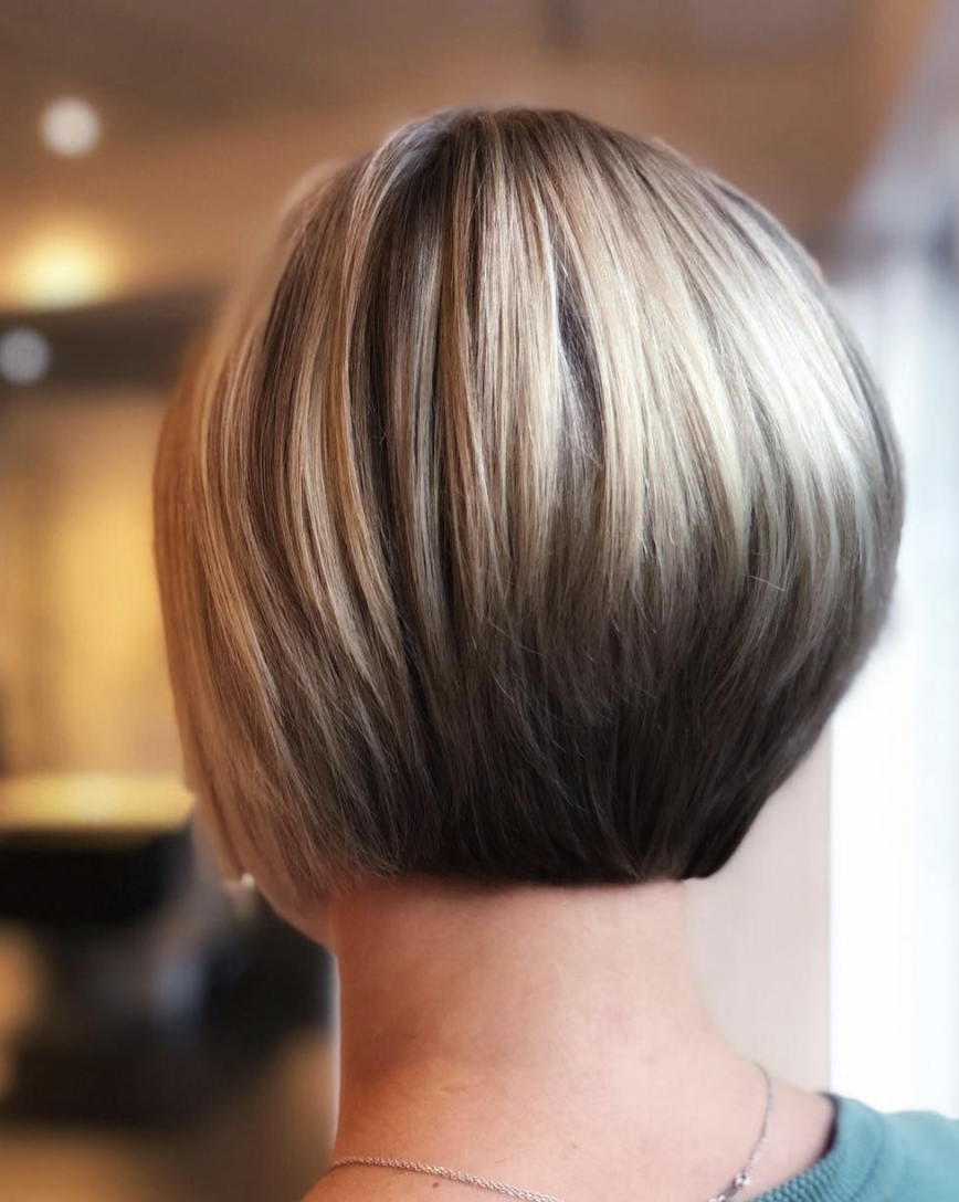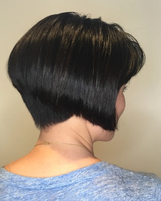 Такая стрижка не оставит вас равнодушными. Максимально короткие волосы на затылке и умеренная длина по бокам составляют основу прически. Градуировка создает объем и делает боб еще более шикарным. Незаменимым вариантом станут градуированные пряди на тонких волосах. Они сделают прическу пышной.