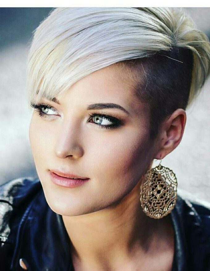 Отличный способ создать впечатление густых волос — половину постричь очень коротко, а вторую укладывать на одну сторону. Такие женские стрижки на тонкие волосы, модные в 2022 году, делают круглое лицо очень привлекательным, это доказывает предложенное фото.