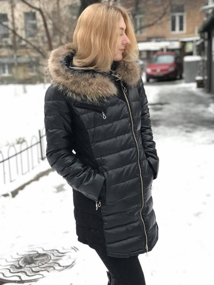 Зима 2018, новый черный пуховик с большим меховым воротником из …