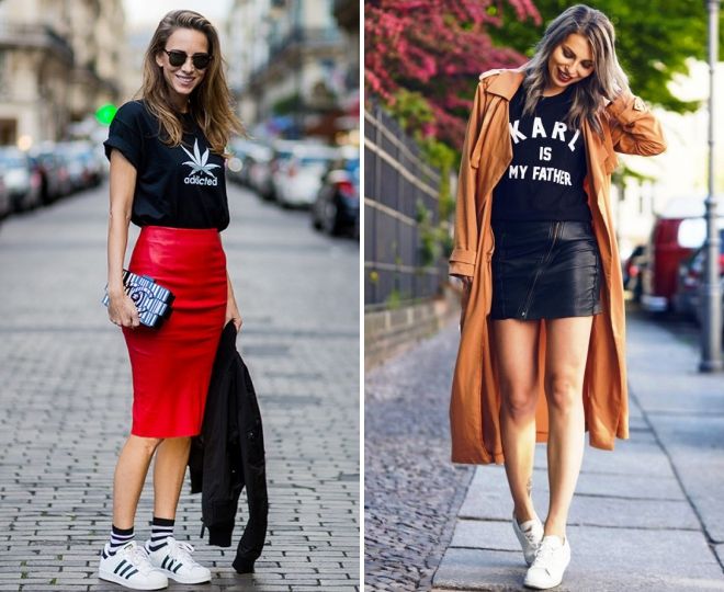 Кожаная юбка с кроссовками (73 фото)