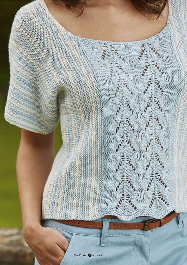 Смотрите как заиграл всем известный узор павлинье перо в в этом летнем джемпере.Модель получилась просто превосходной,стильной,модной и современной.