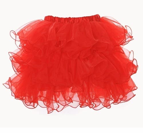 Милая пышная красная юбка прекрасно смотрится на молодых девушках с идеальными формами и подходит для самых разных мероприятий.