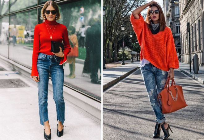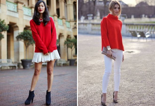 Любая модница старается пополнить свой гардероб несколькими модными свитерами. С их помощью легко дополнить образ с красной водолазкой.