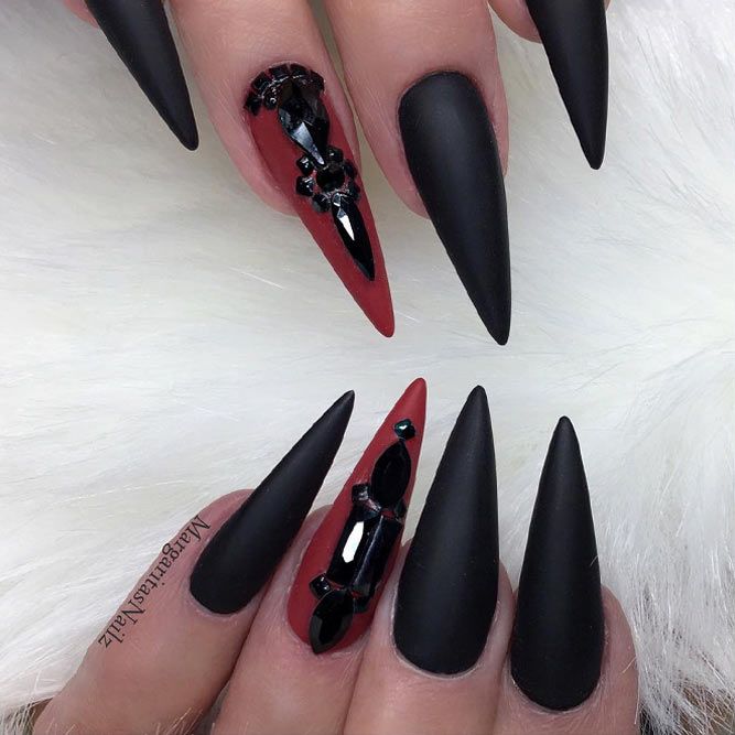 Матовые черные ногти на шпильках очень шикарны, а красные матовые ногти на шпильках также вы обнаружите, что они выберут практически все.Они выглядят особенно потрясающе, если на один ноготь добавить немного нейл-арта. Черный настолько темный, насколько это возможно, так что это отличное средство, чтобы немного оживить их. Матовые черные ногти на шпильках сейчас в тренде, поэтому вы не ошибетесь, выбрав такой образ.