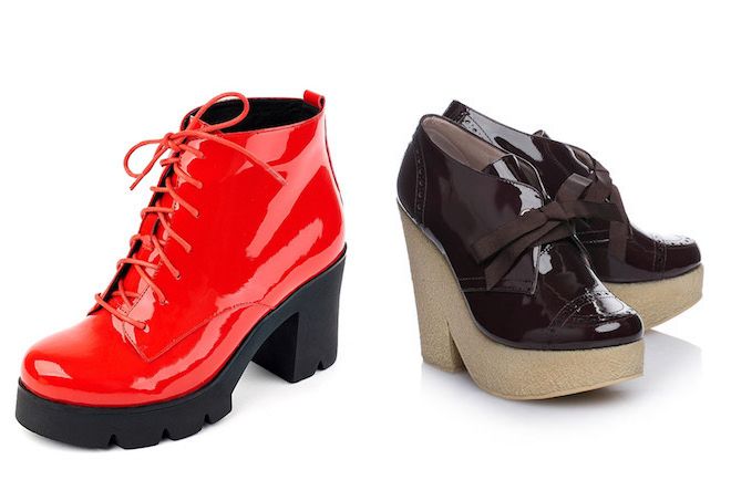 Лак – ещё один тренд, вернувшийся из прошлого. Он прекрасно подчёркивает элегантность образа, будь то туфли или ботинки. Запомните простое правило: чёрный лак можно обувать со всем, а вот цветной уже требует спокойных оттенков в одежде.