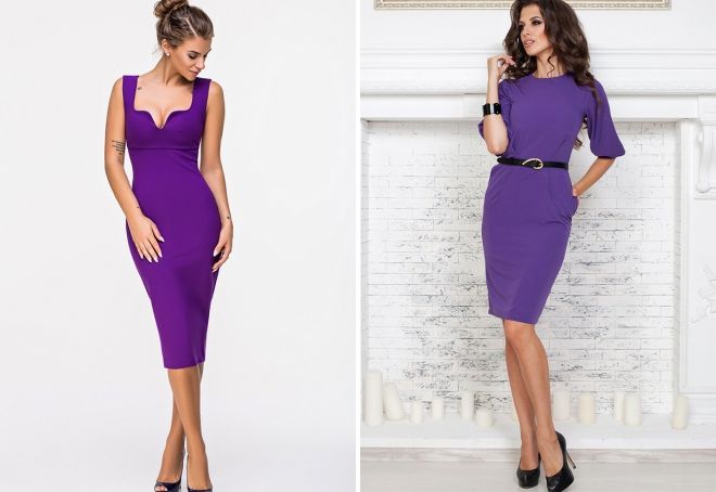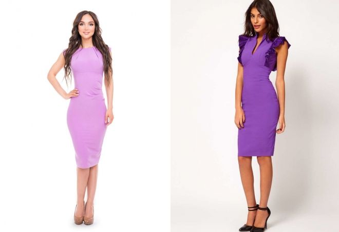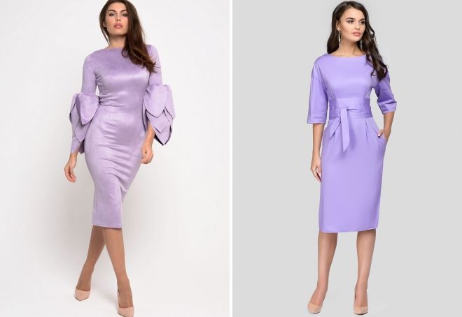 Для составления делового лука идеально подойдет светло-лиловое платье или темный вариант фасона «футляр»:
