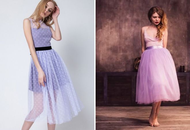 Очень стильно и неординарно выглядит пышное лиловое платье, изготовленное с использованием фатина: