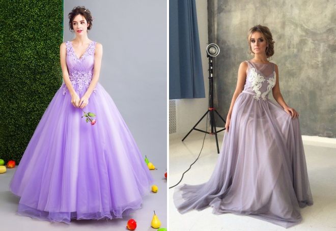 Пышное платье всегда было лучшим поводом для дизайнеров проявить свои творческие фантазии. Эта модель отлично подчёркивает талию и скрывает бёдра. В качестве украшений пышных платьев используют рюши, драпировку, банты, атласные ленты. Фиолетовое пышное платье — это отличный вариант для выпускного вечера или для того, чтобы отправиться в нём на торжественный приём.