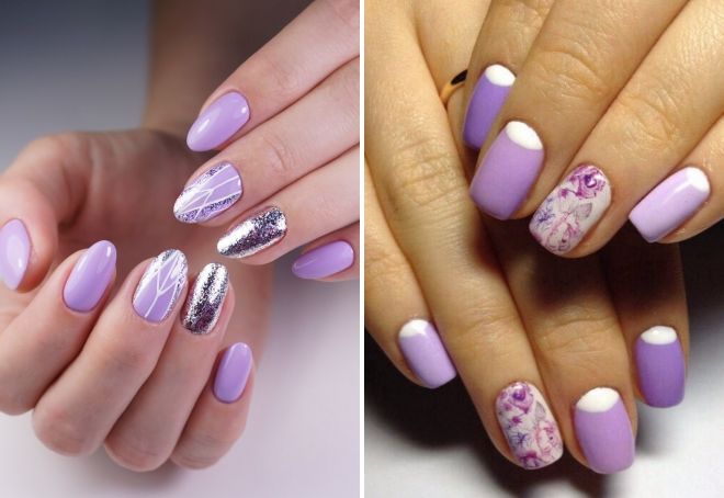 К цветам и оттенкам, которые гармонично сочетаются с фиолетовым лаком относятся мятный, чёрный, бежевый, розовый, золотой и серебряный.