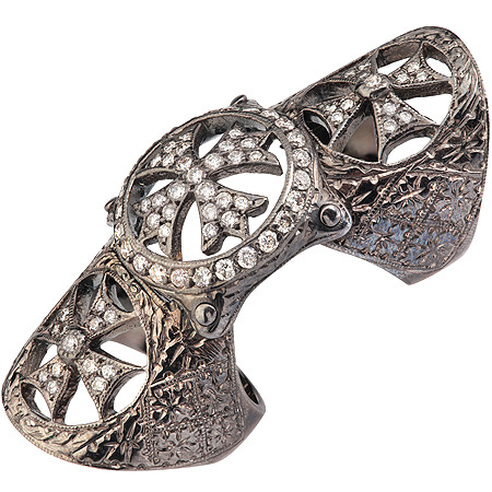 Loree Rodkin Кольцо-щит из 18-каратного родия из белого золота с фурнитурой цвета пушечной бронзы с инкрустированными бриллиантами на каждой пластине щита. С пометкой 18к, ЛР. Кольцо 7 размера, вес 18,65 грамм.