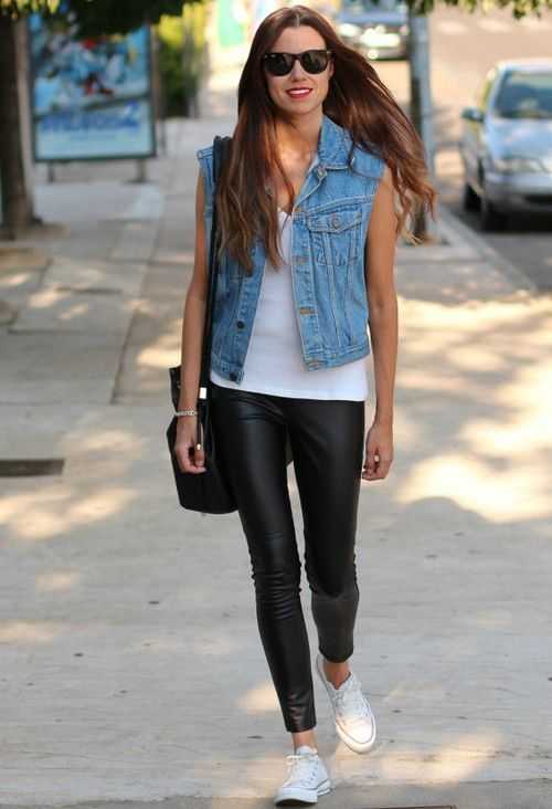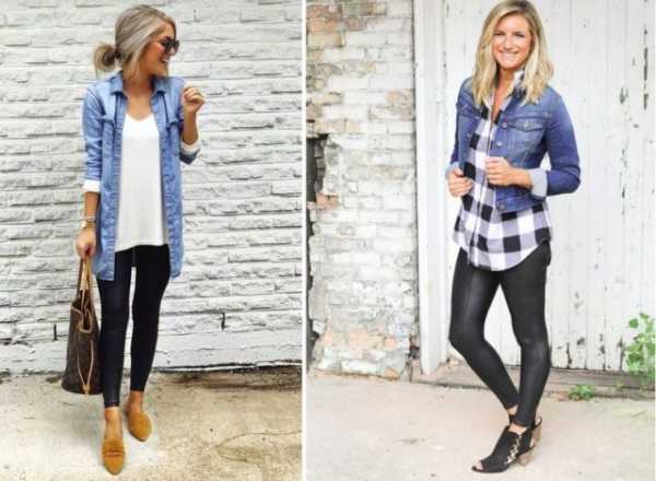 Для ознакомления с другими модными луками, обратите внимание ниже на фото, с чем носить джинсовые легинсы: