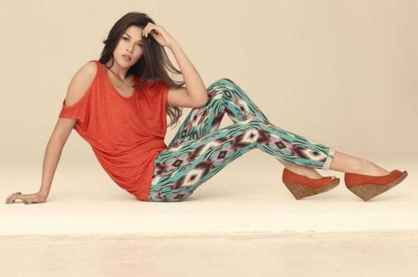 Молодежная мода приветствует модели в клетку, горошек, с брызгами краски или с перышками, гармонично комбинирующиеся с однотонными топами, блузами или туниками. Брюки нейтральных тонов можно соединить с разноцветным или пестрым верхом – клетчатыми рубашками, многоцветными свитерами, яркими кофтами. Для акцентирования молодости и освежения стилей используются цветные легинсы, которые гармонично сочетаются с однотонными изделиями сдержанных расцветок. Эпатажные брюки с принтом космос или тигровым окрасом целесообразно соединять с простыми вещами монохромного исполнения.