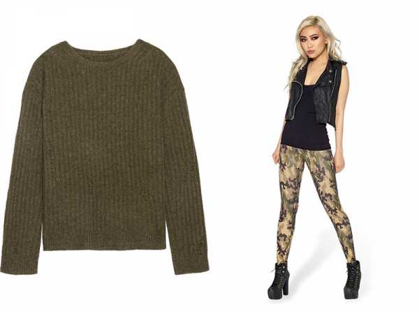 Если вы хотите создать стиль «милитари», будьте готовы к выбору вещей мужского кроя и одежды лаконичного оформления. Здесь будут уместны темные горчичные брюки с цифровым камуфляжем и оливковые рубашки на пуговицах, коричневые хлопковые блузы без рукавов, а также коттоновые темно-зеленые жилеты. Городской «гранж» приемлет изысканные комбинации функциональных и практичных элементов одежды. К примеру, отлично соединятся джеггинсы и джинсовые платья – рубашки или стрейчевые брюки с кожаными вставками и белая блуза + кожаный жилет. Для создания молодежного образа пригодятся камуфляжные брюки и клетчатая рубашка, а также рваные легинсы с отверстиями на коленах, соединенные с укороченными юбками в складку.