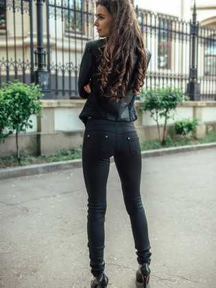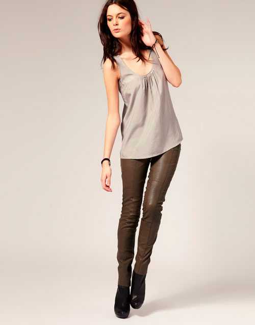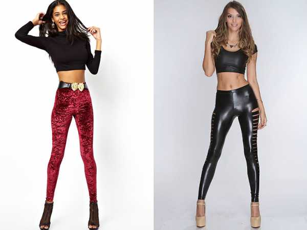 Такие модели очень напоминают кожаные штаны и имеют совершенно разную фактуру, а иногда и интересные детали вроде шнуровки или кружева. Блестящие кожаные леггинсы — идеальный выбор для стройных и худых девушек.