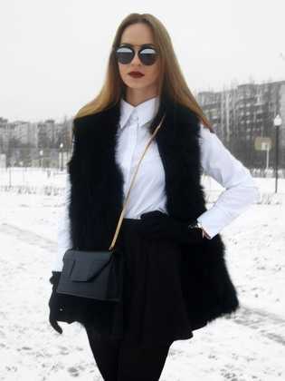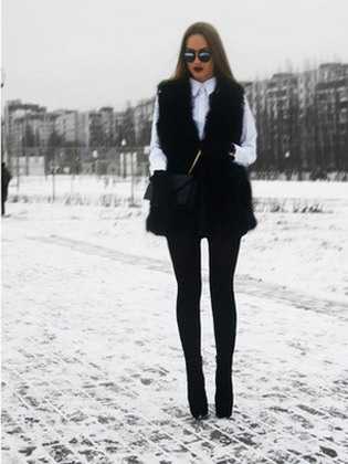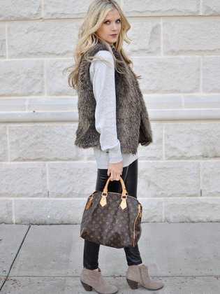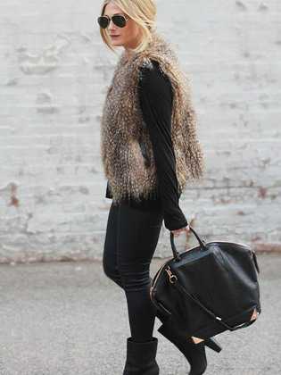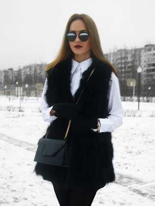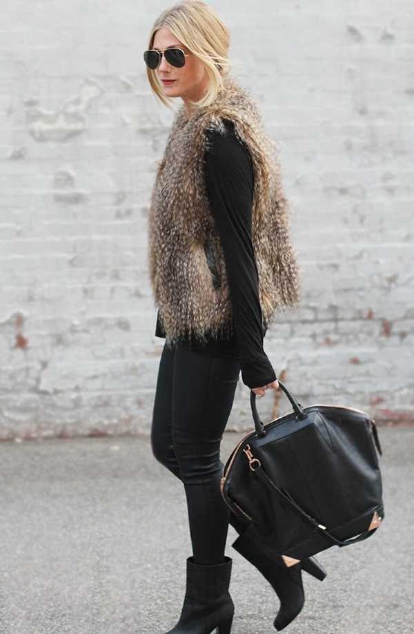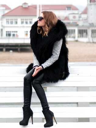 Меховая жилетка. С этой стильной одеждой, от которой не сможет отказаться ни одна модница, лосины смотрятся великолепно.