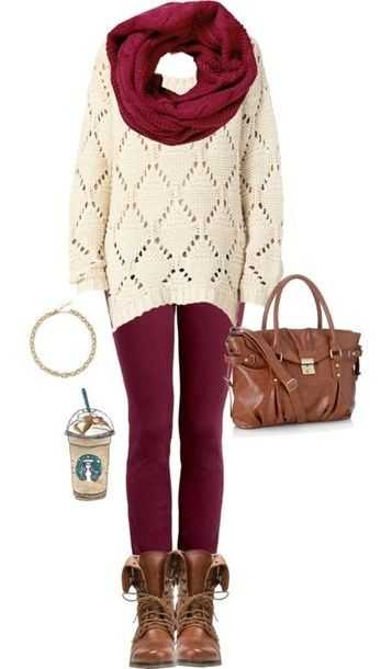Очень удобен комплект с легинсами, удлиненными футболками, легкими свитерами. В это время года ансамбли могут быть дополнены кардиганом, жилетом, косухой. Верх должен быть нейтрального оттенка. Темно-серый, черный, фиолетовый составит хорошую пару выбранному низу.