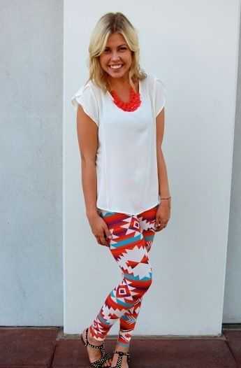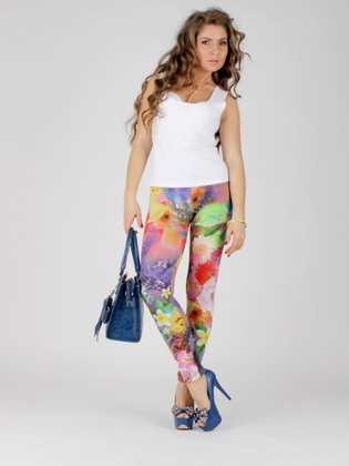 С приходом весны модницы спешат узнать, с чем носить цветные легинсы. Однотонные цветные модели или лосины с принтами можно носить с туниками и футболками. Такие наряды подчеркнут стройные ноги и немного оживят образ девушки. Слишком яркие лосины или обтягивающие штаны с контрастным принтом лучше всего надевать с однотонным неброским верхом.