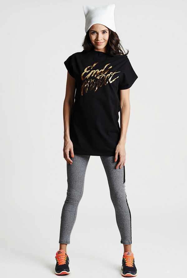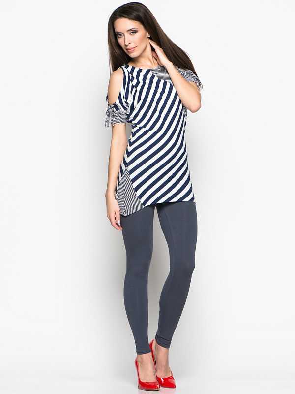 Дисгармонично смотрится с лосинами обтягивающий топ, футболка или платье. Леггинсы сами по себе очень сексуальный и откровенный предмет гардероба, и дополнительный акцент подобного рода будет избыточным и даже вульгарным.