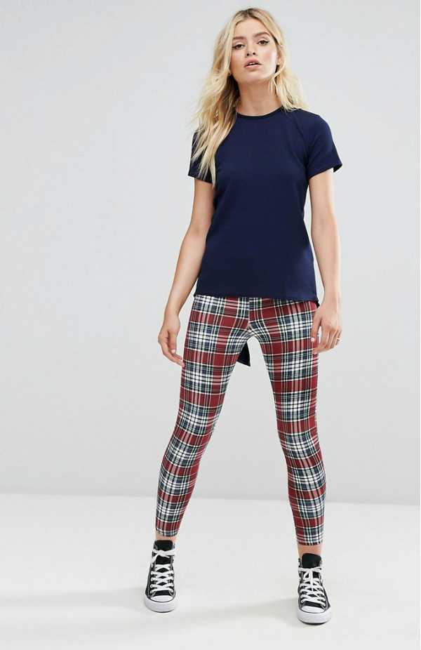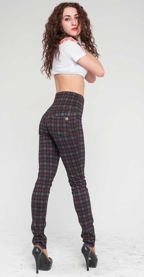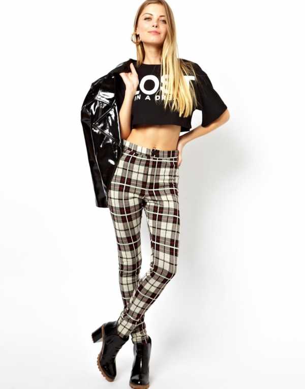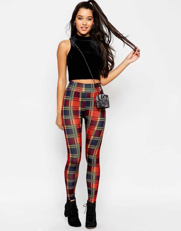 Легинсы в клетку – актуальный тренд. Рассматривая варианты, с чем сочетать низ, следует остановиться на спокойных, однотонных вариантах — это уравновесит буйство красок, ансамбль получится стильным. Следует помнить: размер одежды играет решающее значение.
