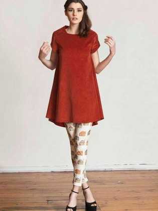 Короткие платья – еще один вариант, хорошо сочетающийся с плотными лосинами. Такое сочетание идеально подходит для весны и осени. В холодную погоду с таким нарядом можно надеть короткое пальто или куртку и сапоги.