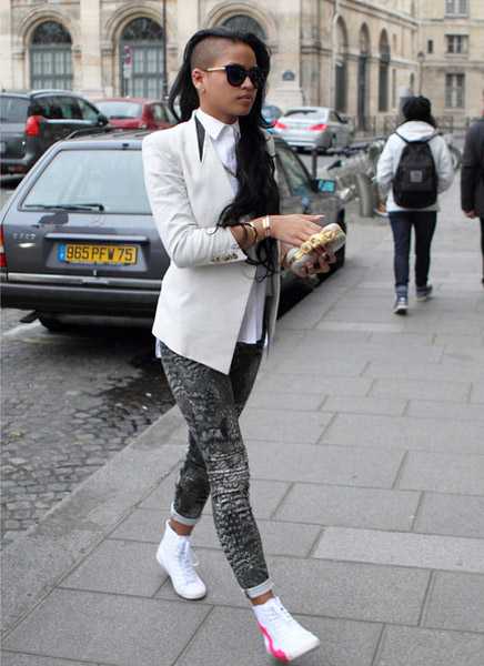 К ним подходит любая обувь, от кед и кроссовок, до туфель на каблуке.