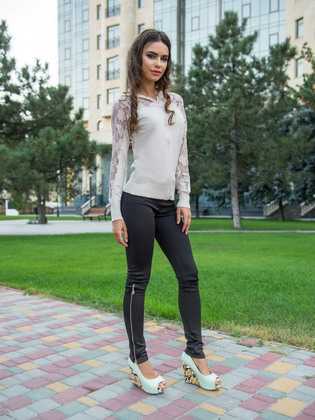 Блузки жемчужного или нежно-розового цвета – лучший вариант, с чем носить серые легинсы. Светло-серый цвет смотрится элегантно и изысканно, для создания нежного образа такие лосины можно надеть с абрикосовым, сиреневым, карамельным, коралловым верхом.