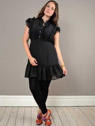 Однако не стоит облачаться в балахон, так как на его фоне обтянутые ноги будут казаться слишком тонкими. На пышных дамах красиво смотрятся короткие платья в виде туники или удлиненные блузы с кокеткой под грудью.