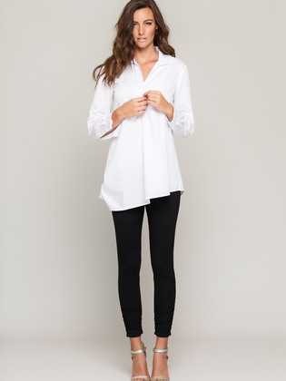Они гармонируют с рубашкой, блузой удлиненного фасона. Ансамбль подходит для ежедневной носки, выглядит стильно, при этом очень комфортный. Вариации рубашек могут быть разные — однотонные, принтованные, клетчатые модели.