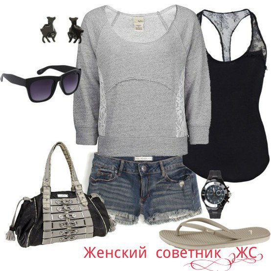 Если она планируется для оформления городского образа, то такой стиль нередко формируется на принципе многослойности. Это может быть комплект из топа, шорт и укороченного до талии жакета. Вполне гармонично выглядит ансамбль из свитшота, леггинсов.