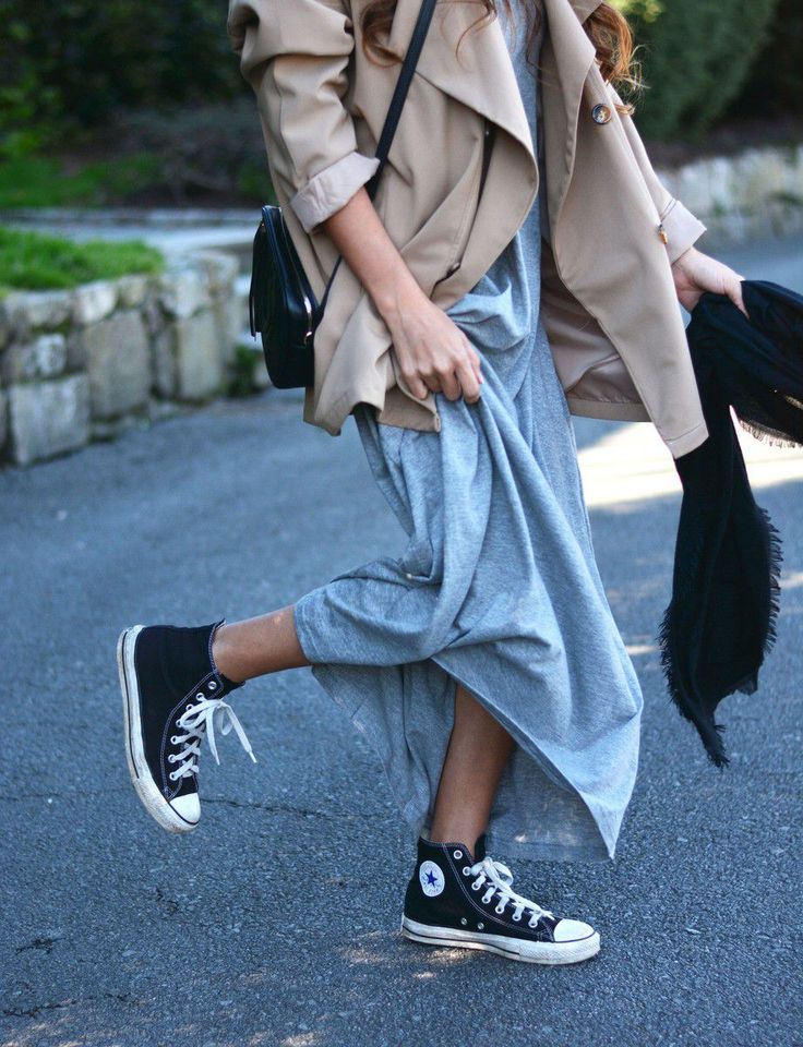 Источник фото: pinterest.ruТакое сочетание, как «кроссовки+платье» является одним из самых обсуждаемых и противоречивых в мире моды. У него есть масса поклонниц и масса противниц, а так же огромное количество стильных вариантов на любой день и случай в жизни.