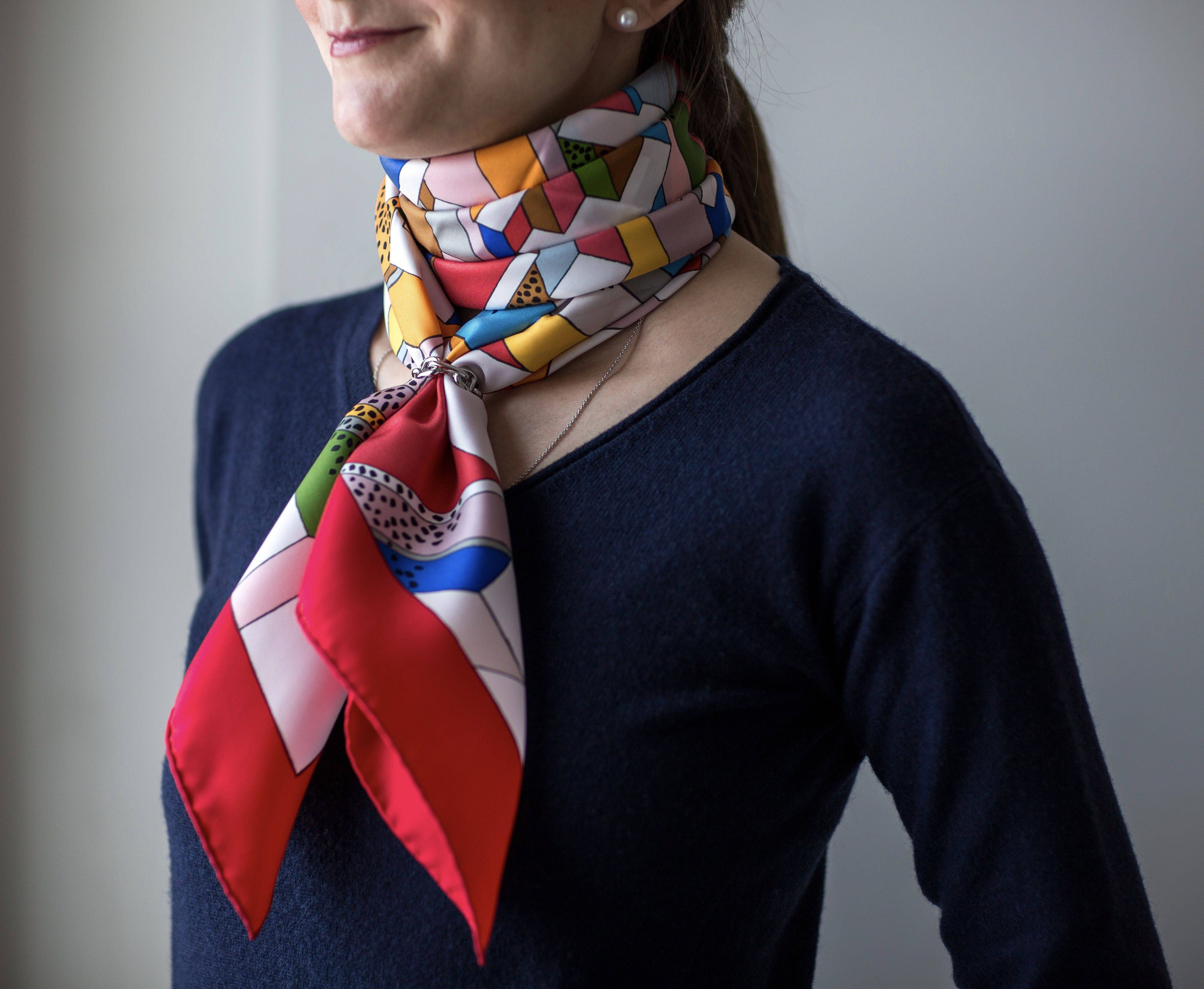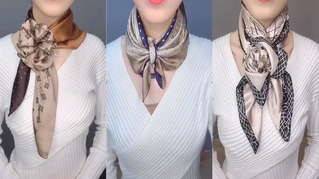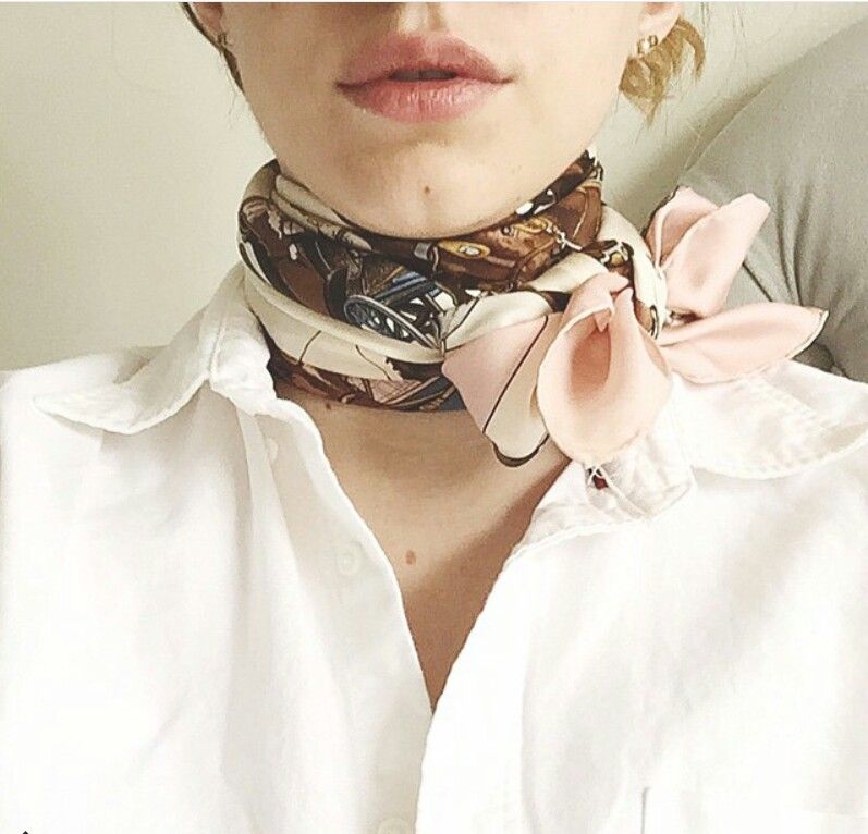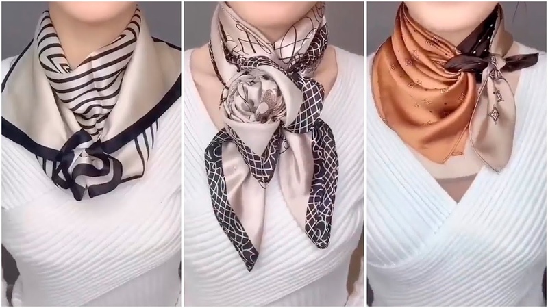 Как носить маленький шелковый квадратный шарф: 6 способов