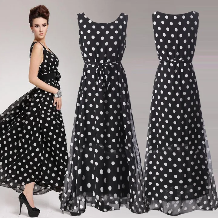 Для характеристики столь любимого многими женщинами платья в горошек можно использоваться самые разные эпитеты в зависимости от фасона, качества ткани, цветового решения, размера и частотности горошин: женственное, романтичное, элегантное, стильное, классическое, кокетливое, дерзкое и т.