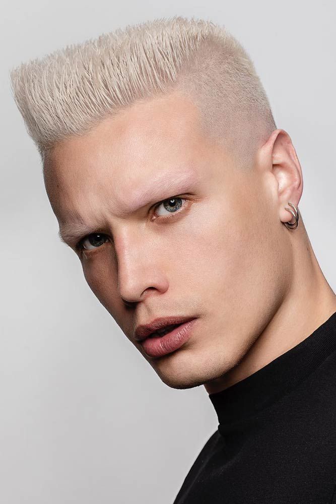 Большое внимание здесь уделяется именно кончикам волос, которые должны быть отчетливо видны на фоне всей прически. Если ежик создается на короткие волосы, то виски и затылок коротко стригутся или выбриваются для создания контраста между макушкой. Если на средние волосы, то укладке подвергаются волосы по всей окружности головы: на макушке, затылке и висках.