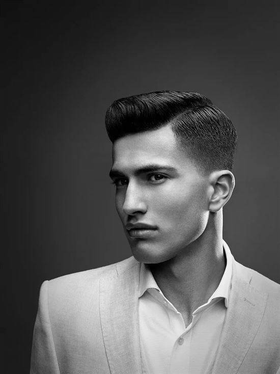 Эта одна из самых популярных современных стрижек. Внешне она очень напоминает «канадку» или «британку» (волосы на макушке приподняты и аккуратно зачесаны назад или набок), однако здесь основной акцент идет не на пышность челки, а на контраст между длиной волос на макушке и длиной локонов на висках.