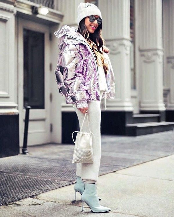- Разбавить monolook брендовыми аксессуарами, например, сумочкой, а также обувью металлического цвета.