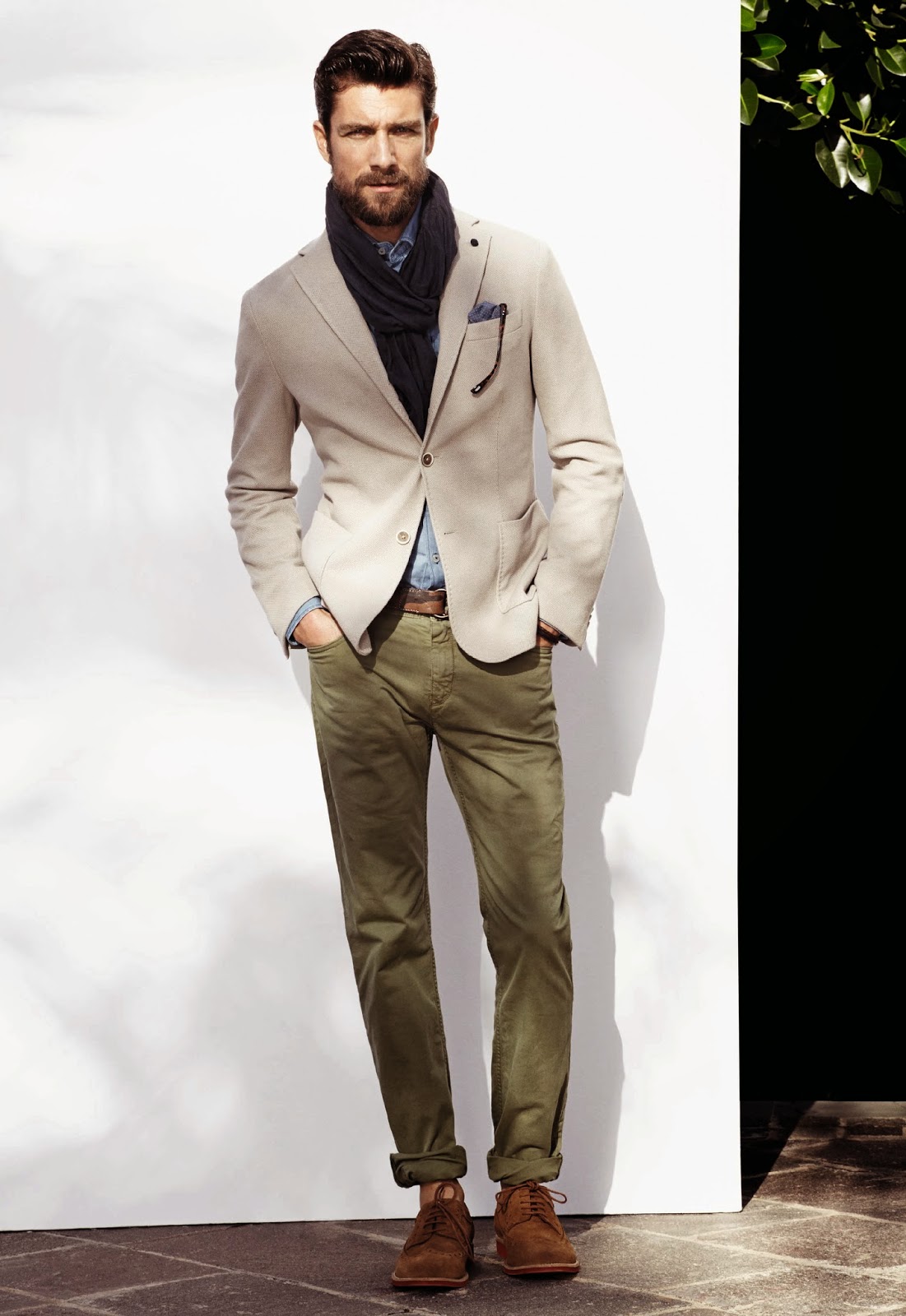 Брюки лучше выбирать зауженные, но не слишком узкие или свободные, а также пиджак можно комбинировать с джинсами.