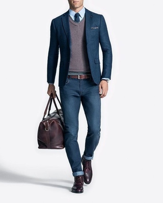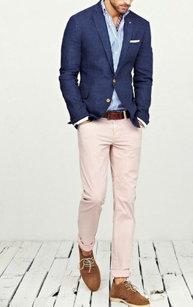 - Пиджак или блейзер обязательно должен присутствовать в стиле бизнес кэжуал. Отлично будет смотреться пиджак цвета индиго поверх белой или голубой рубашки, при этом она может быть сверху немного расстёгнута.