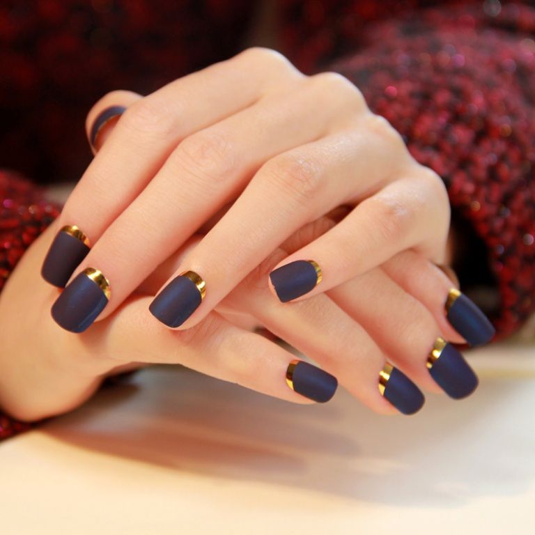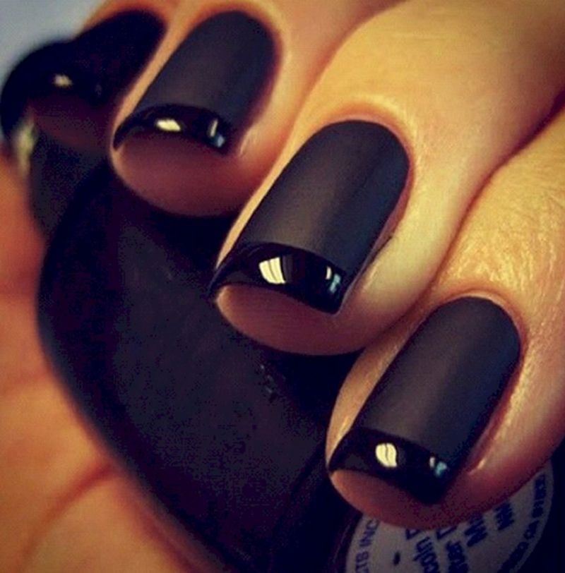 Незаменимый вид нейл-арта для фееричного вечера. Стразы и блестки, роспись золотом и серебром, камни, фольга, камифубуки – их сияние на глубоком матовом фоне выглядит ослепительно. Сверкающие элементы могут довести до совершенства, требуемого торжественной обстановкой, дизайн любой длины и формы. Ведь вариантов здесь неограниченное множество. При этом важно помнить, что такой маникюр требует минимума украшений на руках, ведь он шикарен сам по себе.