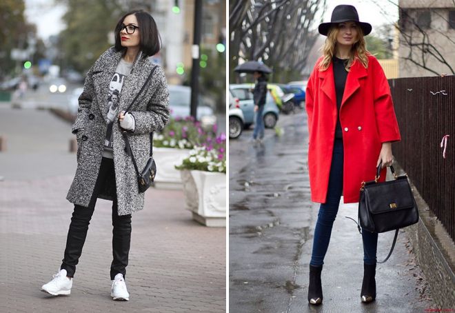 https://www.instagram.com/12storeez/Однотонное, объемное пальто прямого кроя хорошо сочетается со спортивными брюками, если добавить к ним кроссовки. Любительницы спортивного стиля используют такой вариант сочетания одежды.