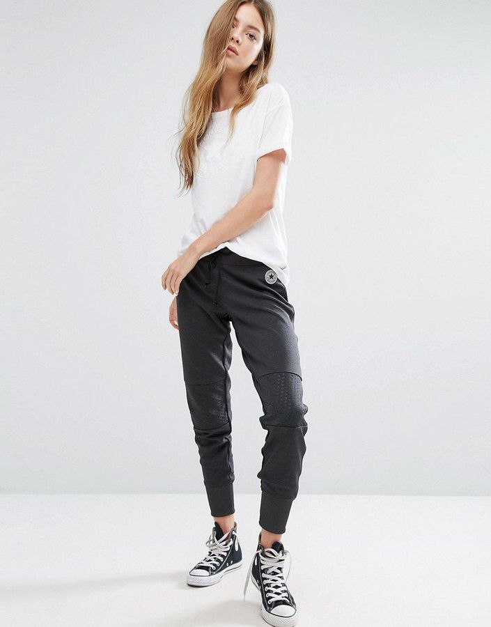 Симпатичные туфли Converse с подходящими спортивными штанами6. Спортивные штаны с шлепанцами