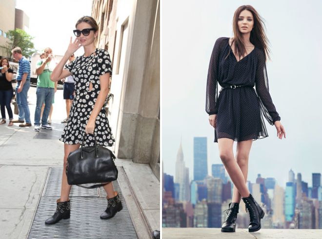 - Подбор высоких сапог и туфель с тракторной подошвой к нарядам из прозрачной и струящейся ткани. Образ требует нежности и непринужденности, чтобы создать легкий лук.