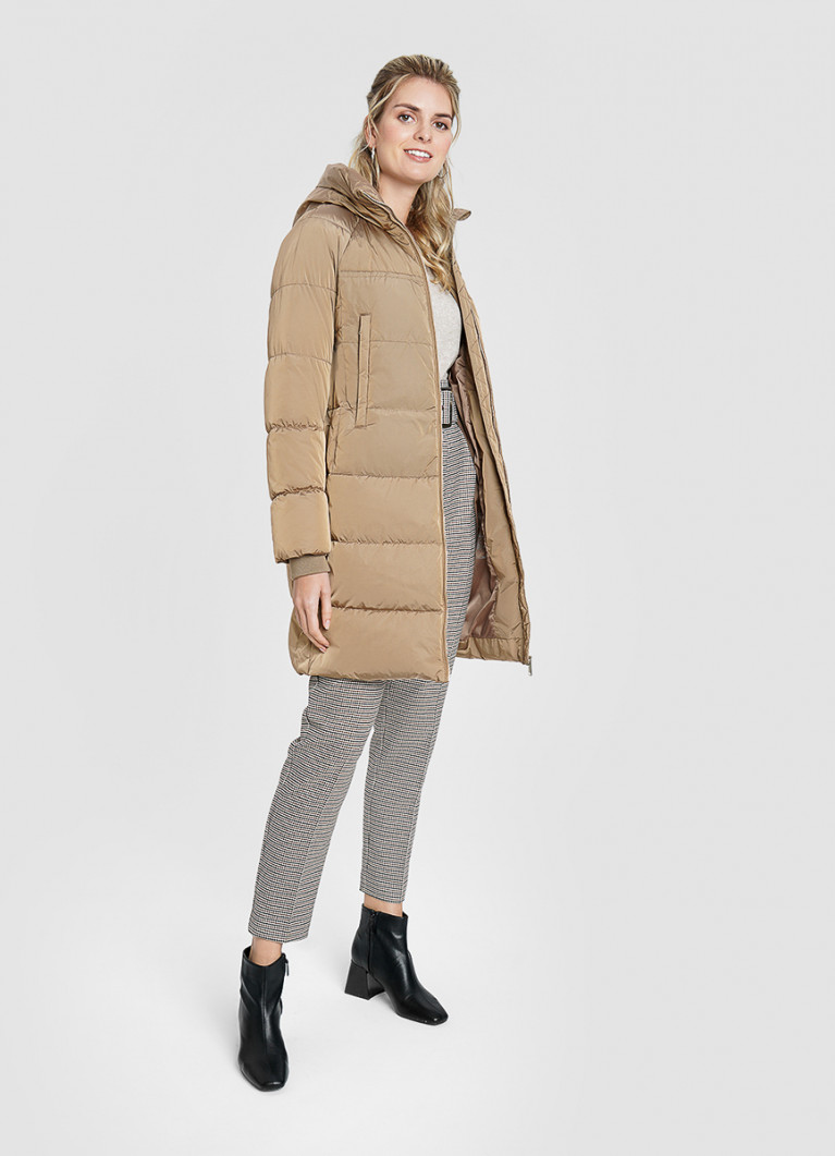 С чем носить пуховик средней длины с капюшоном?