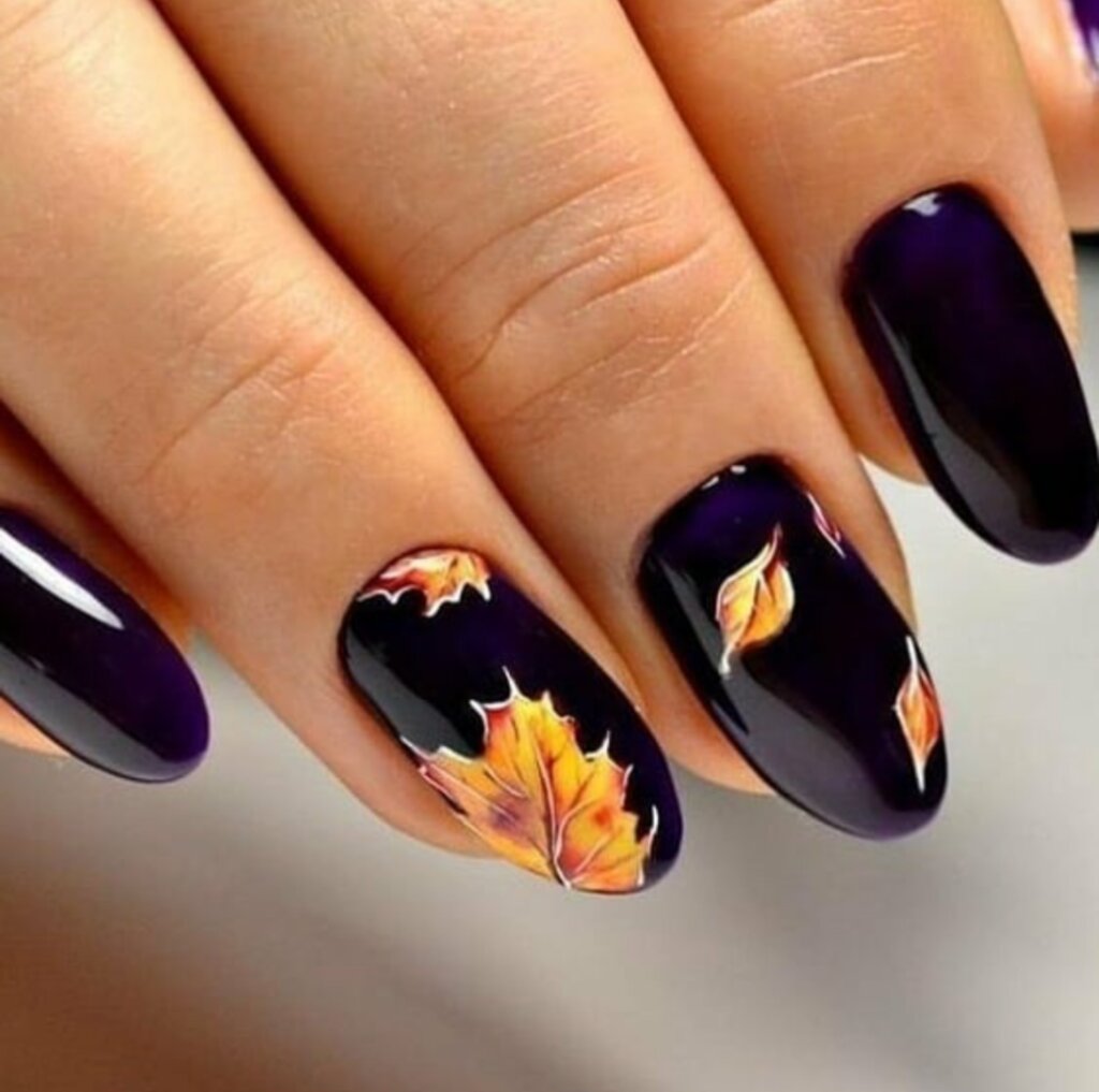 Смотрите гелерею лучших вариантов маникюра с листьями на осень: