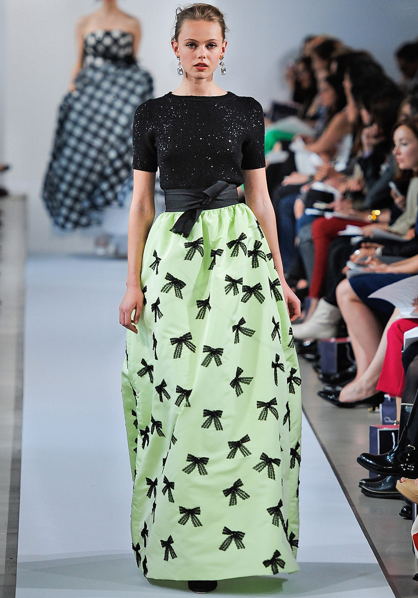 Хотя было легко представить себе, что любое из произведений искусства появится на следующей феерии красной ковровой дорожки этого сезона, коллекция для подиума была вдохновлена стихотворением Геота Ученик чародея и Черно-белым балом Трумэна Капоте, маскарадом, устроенным автором в 1966 году. в культовом отеле Plaza (мероприятие посетил сам де ла Рента). Это может показаться странным браком, но комбинация является намеком на способность дизайнерского дуэта чтить прошлое дома, вырезая, шить и воссоздавая работы своего собственного колдуна.